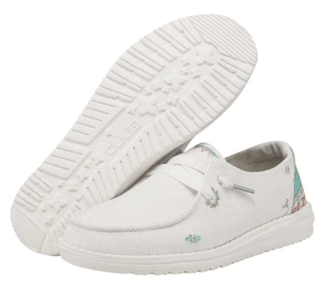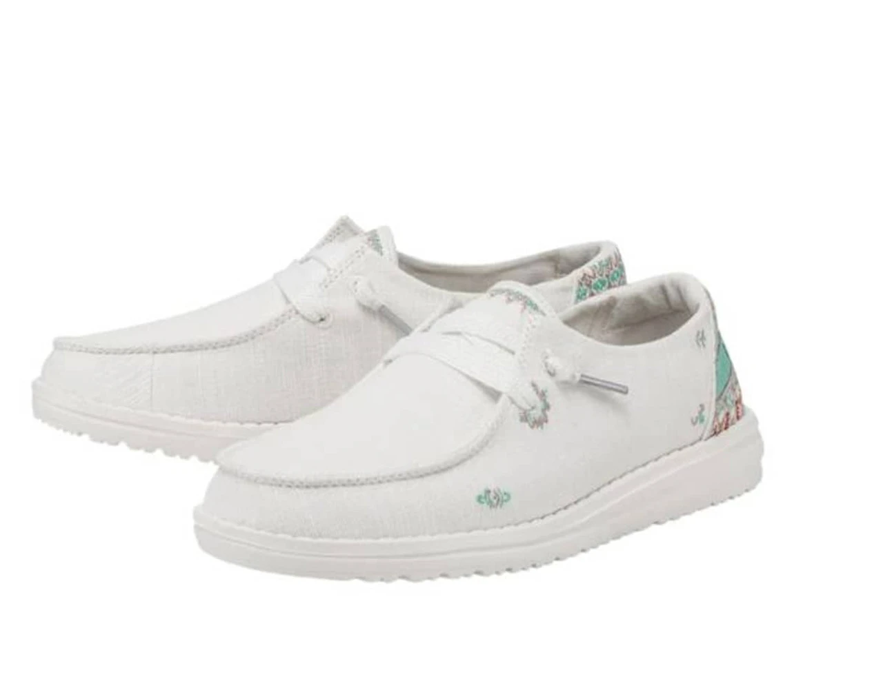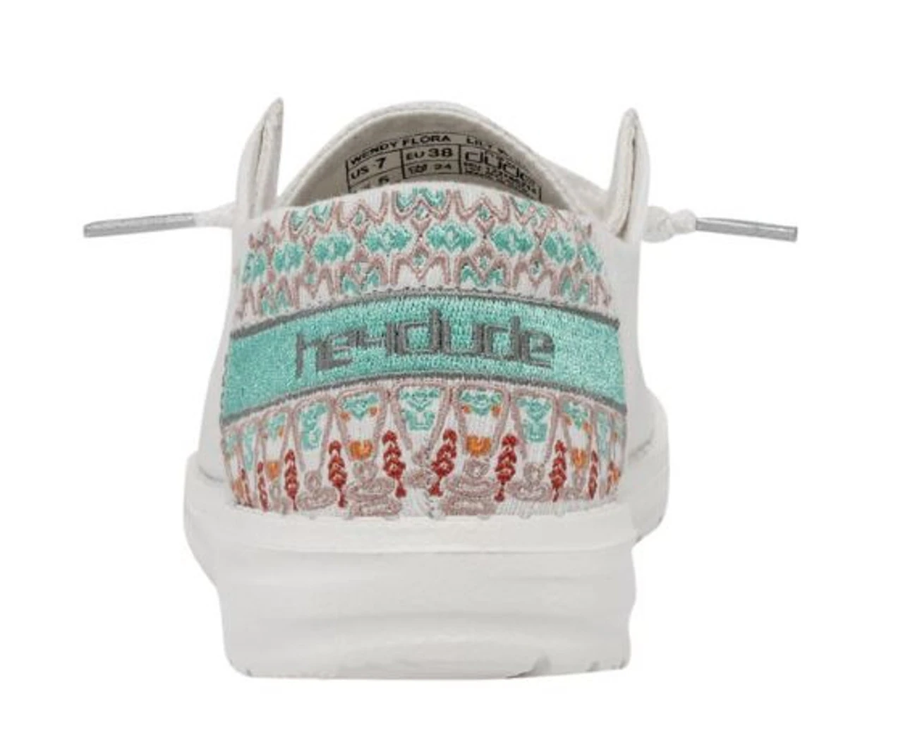 Our classic low-top moc in a breathable, chambray-blend upper and hand-stitched details. The Wendy Flora collection is perfect for everyday wear. Featuring our easy-on system with wide cotton laces and an ultralight outsole for total comfort. With stitched flowers inspired by antique Florentine embroidery. Just right for padding across a summer lawn.