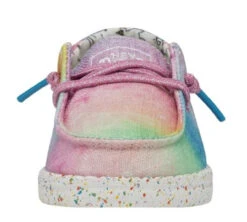 In materials chosen to reflect the imagination and individuality of today’s kids, constructed with a cotton-blend upper and finished off on an ultralight outsole and an easy-on system with elastic laces, to keep her going all day!