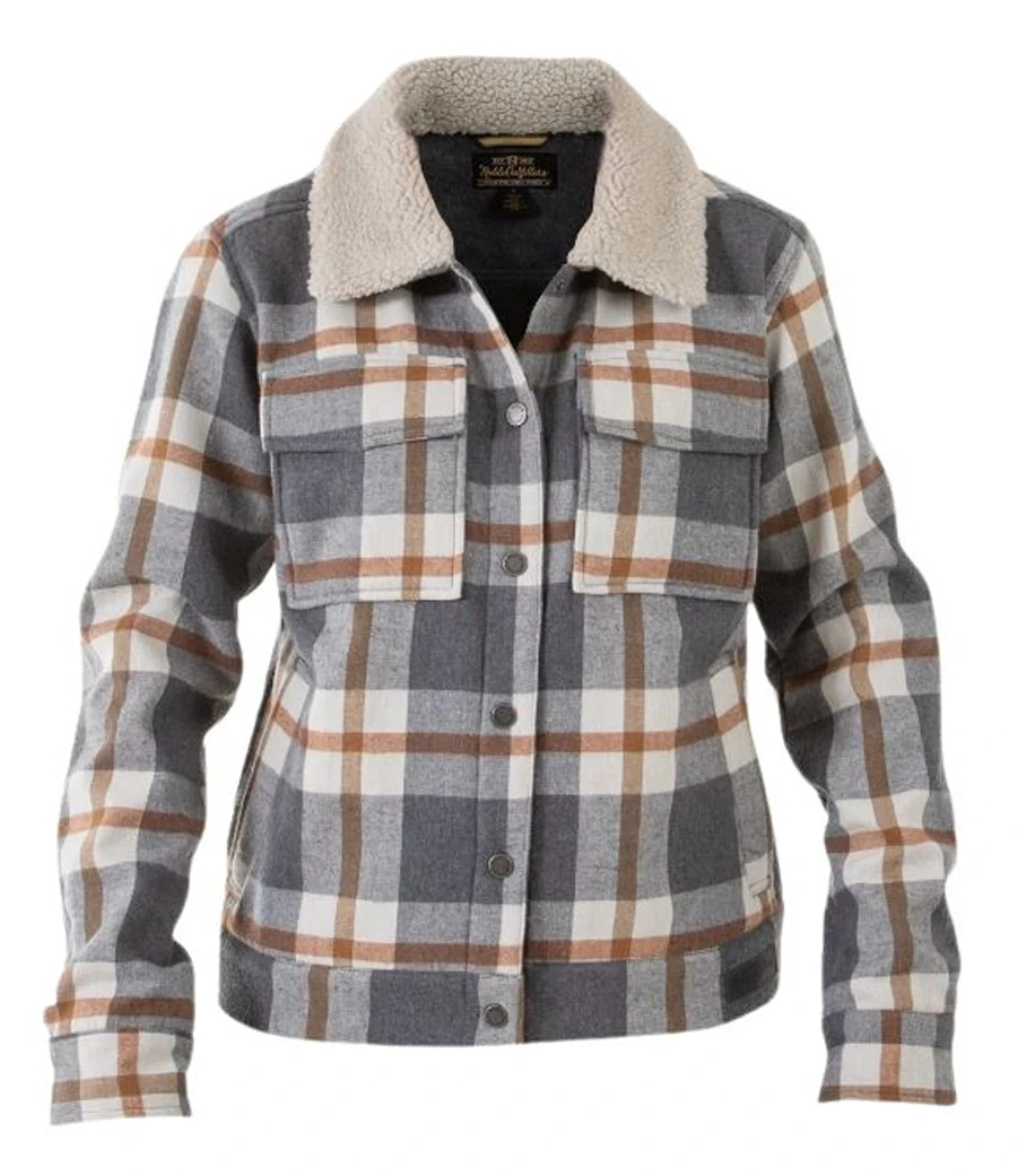 Walk the dog, grab the mail or just relax in these womenâ€s joggers. The relaxed fit and cozy cotton-blend delivers comfort when the work day is finished. Pair this with our Sherpa Lined Full Zip Hoodie for the complete set. 11 oz, Yarn dyed twill flannel, 60% Cotton/ 40% Polyester bonded with 100% Polyester polar fleece back Taffeta lined sleeves for easy on and off Hand pockets with soft brushed lining 2 hook & loop chest pockets Full snap front opening 2-snap adjustable cuff Natural Tan Plaid Sherpa collar