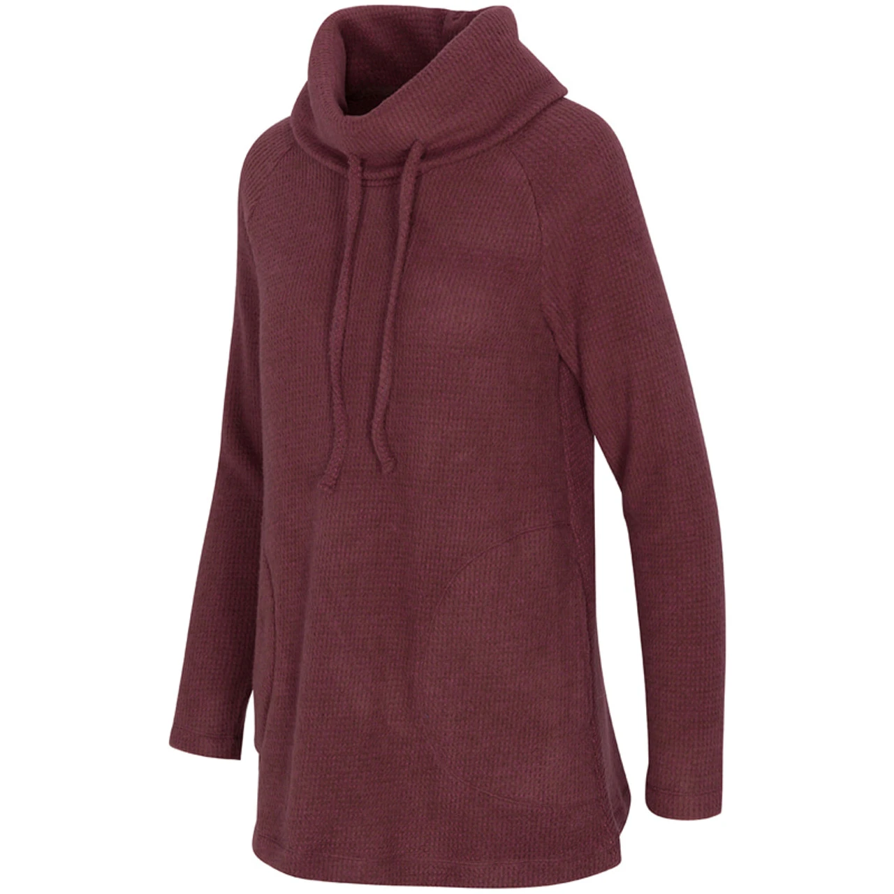 You’ll stay warm and cozy in this North River waffle-knit cowl neck sweater, made from supersoft knit fabric with a drawstring cowl neck and relaxed, casual style. Supersoft waffle-knit blend of rayon, polyester and spandex 57% Rayon, 42% Polyester, 1% Spandex Cowl neck with drawstrings Two hand pockets Long Sleeve Relaxed fit