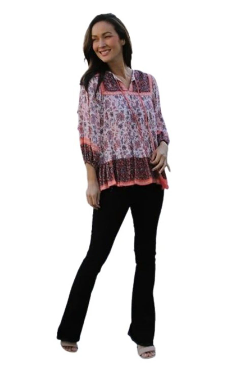 Nostalgia Women’s 3/4 Sleeve Peach Floral Print Blouse