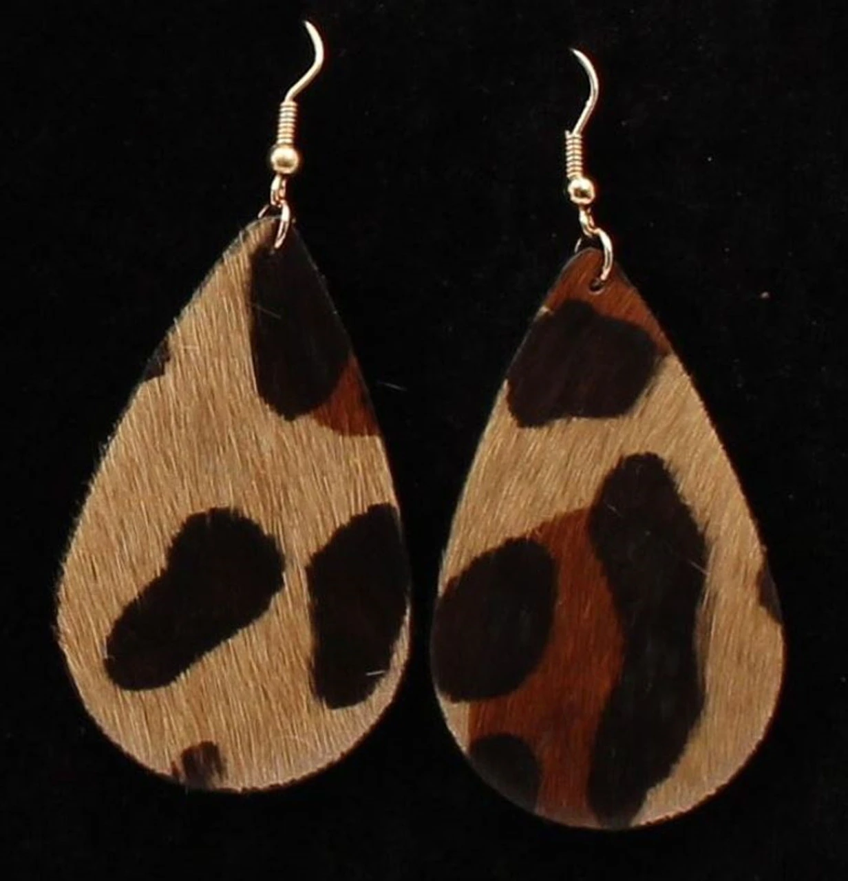 Silver Strike Leopard Print Hair Teardrop Earrings