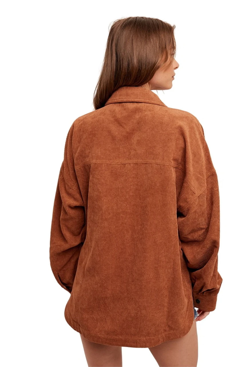 West & Wild Womens Rust Oversized Corduroy Shacket