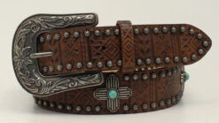 3D Womens Floral Filigree Distressed Full Grain Leather Belt